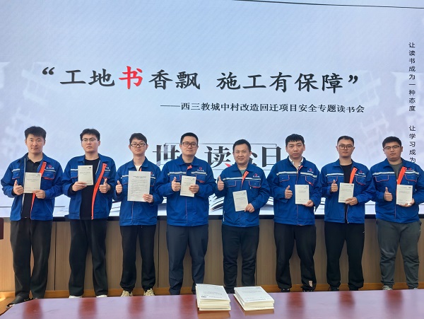 人人都是安全员,个个都是责任人。4月20日,西三教城中村改造回迁项目部将“世界读书日”与“安全培训教育月”活动相结合,开展“工地书香飘 施工有保障”专题读书会。活动现场,项目安全员、工长等管理人员携带近期所读的建筑安全、施工规范等专业书籍,齐聚一堂,分享学习心得。往日氛围严肃的会议室,摇身一变,成为助力职工收获知识、提升自我的学习平台。